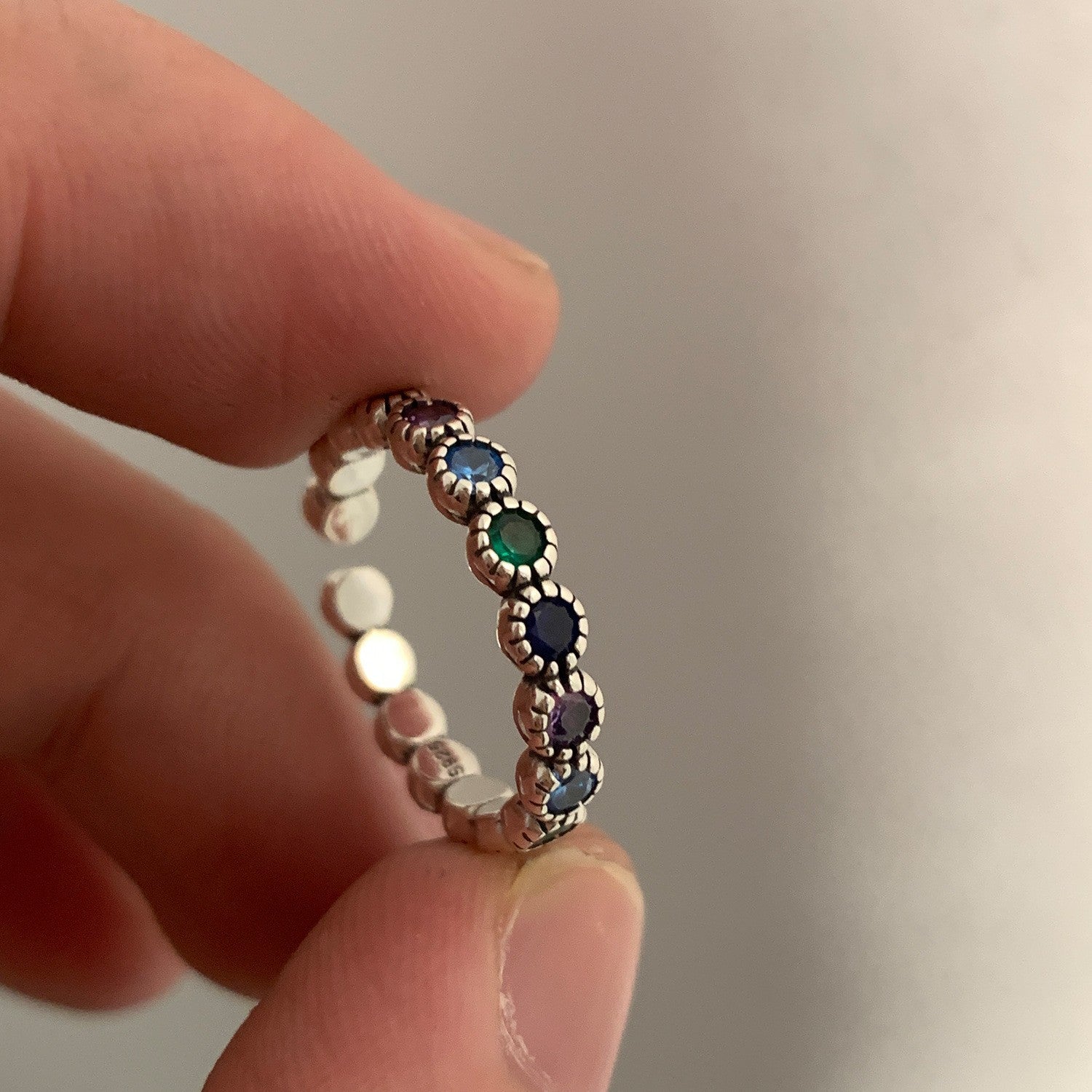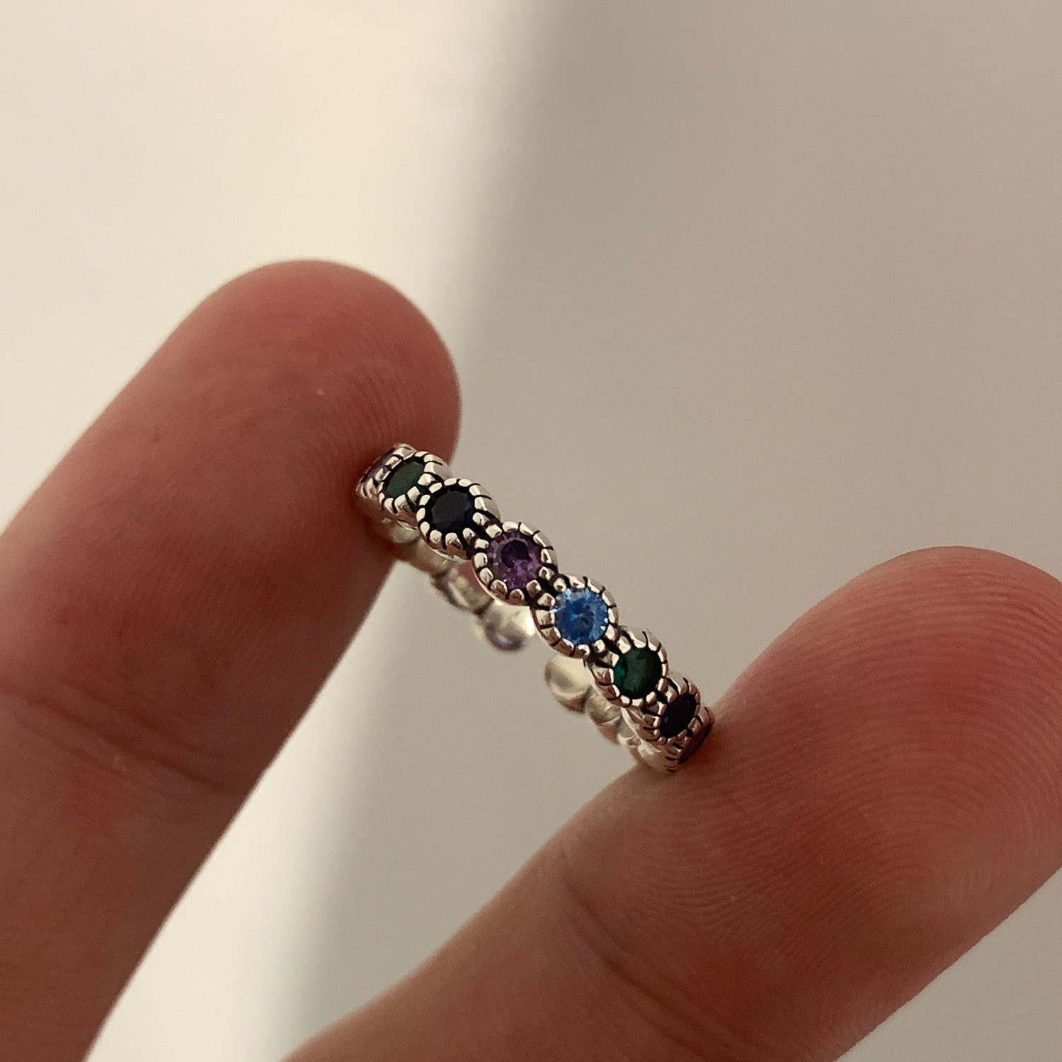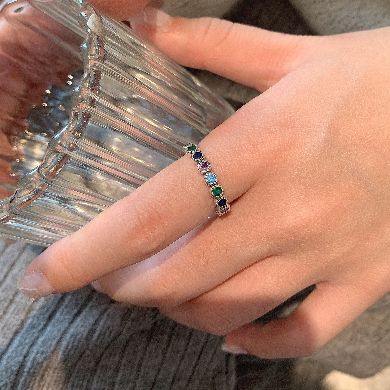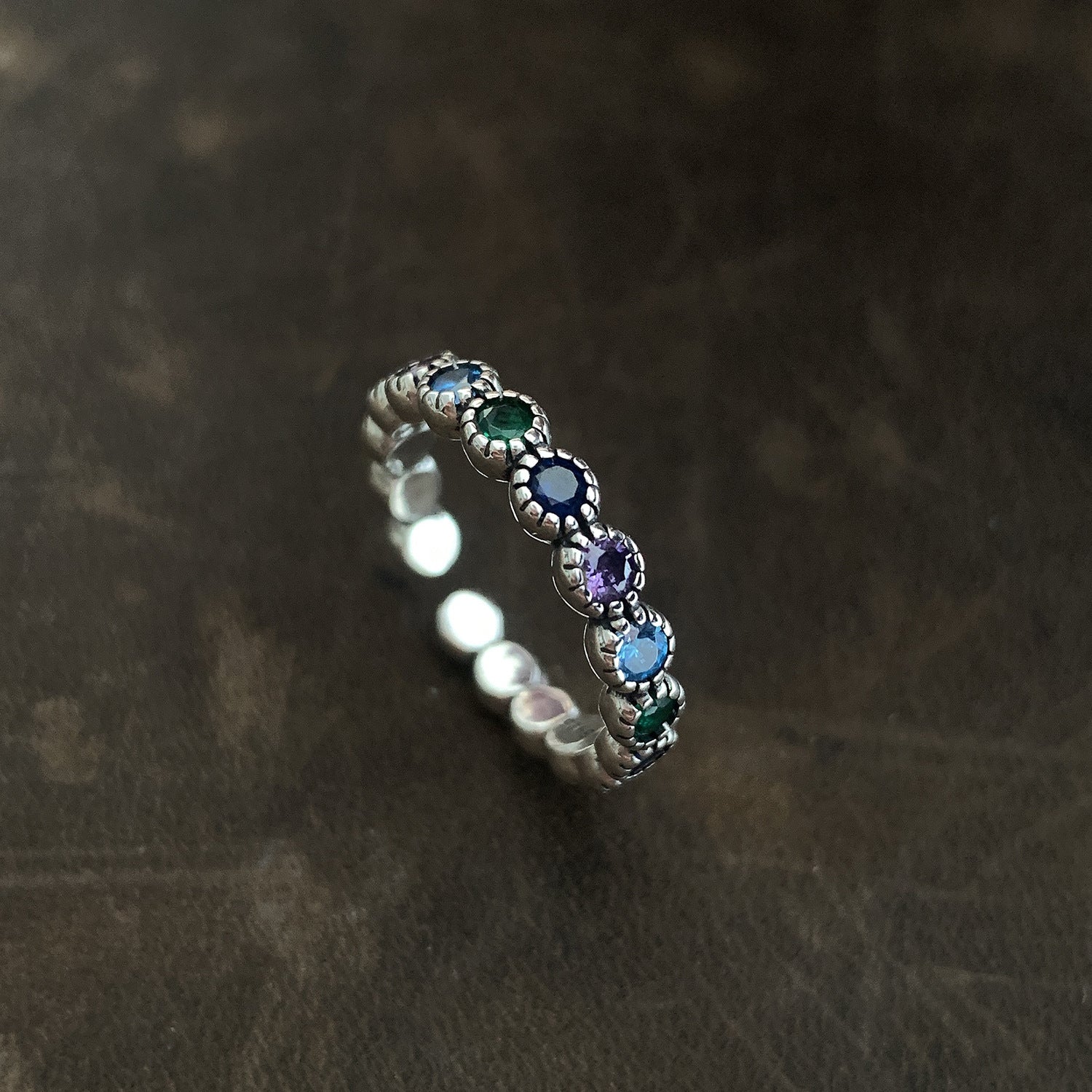 Women's Sterling Sier Retro Rainbow Colorful Open-end Zircon Light Rings