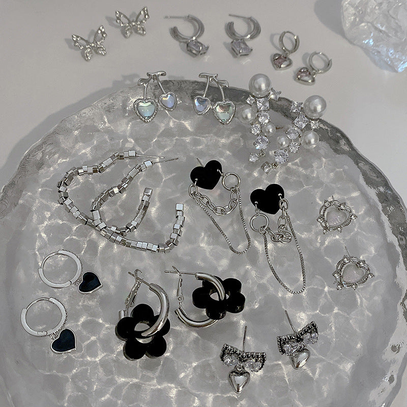 Women's Style Elegant Dark High-grade Geometric Sier Needle Hot Earrings