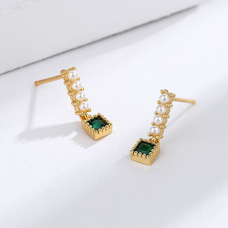 Women's Style High-grade Small Delicate Pearl Retro Emerald For Simple Earrings