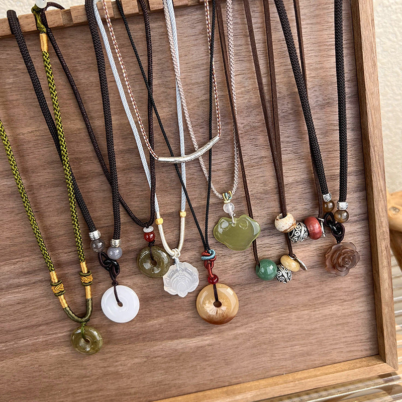 Beaded Jade Butterfly Safety Lock Temperament Necklaces