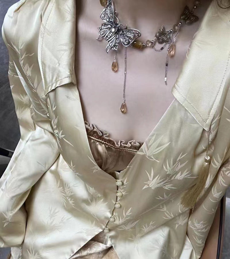 Brown Amber Beaded Butterfly High-grade Cold Necklaces