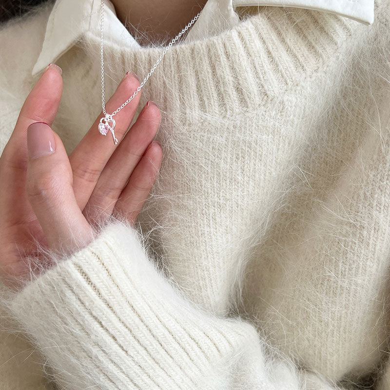 Female With Hearts Key Clavicle Chain Spring Pink Necklaces