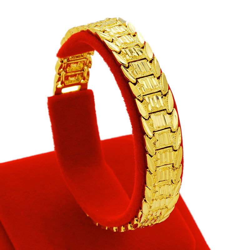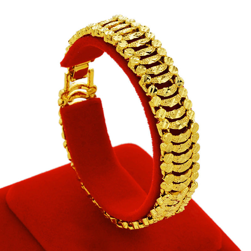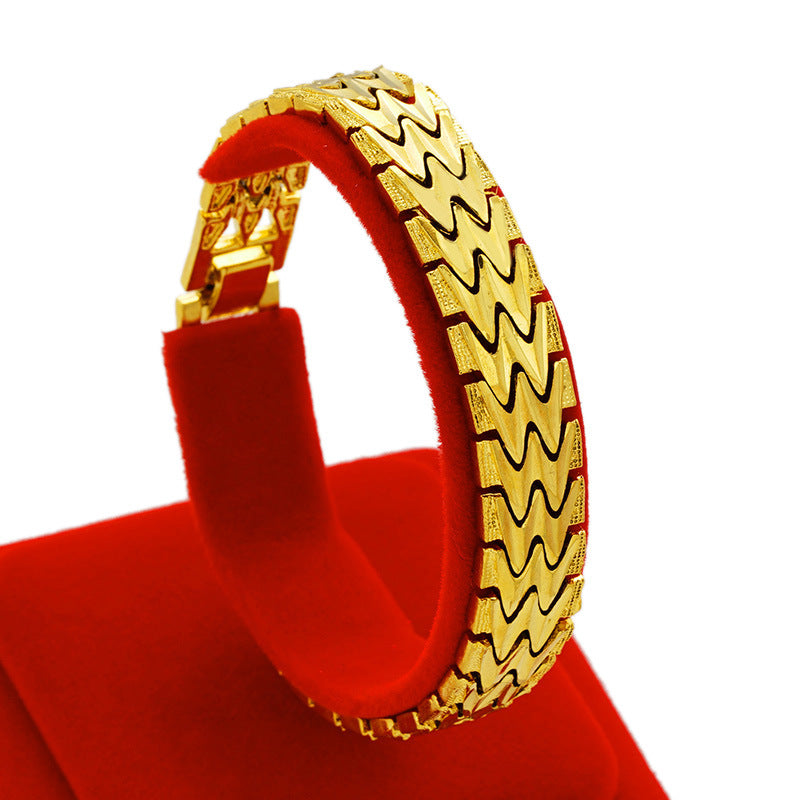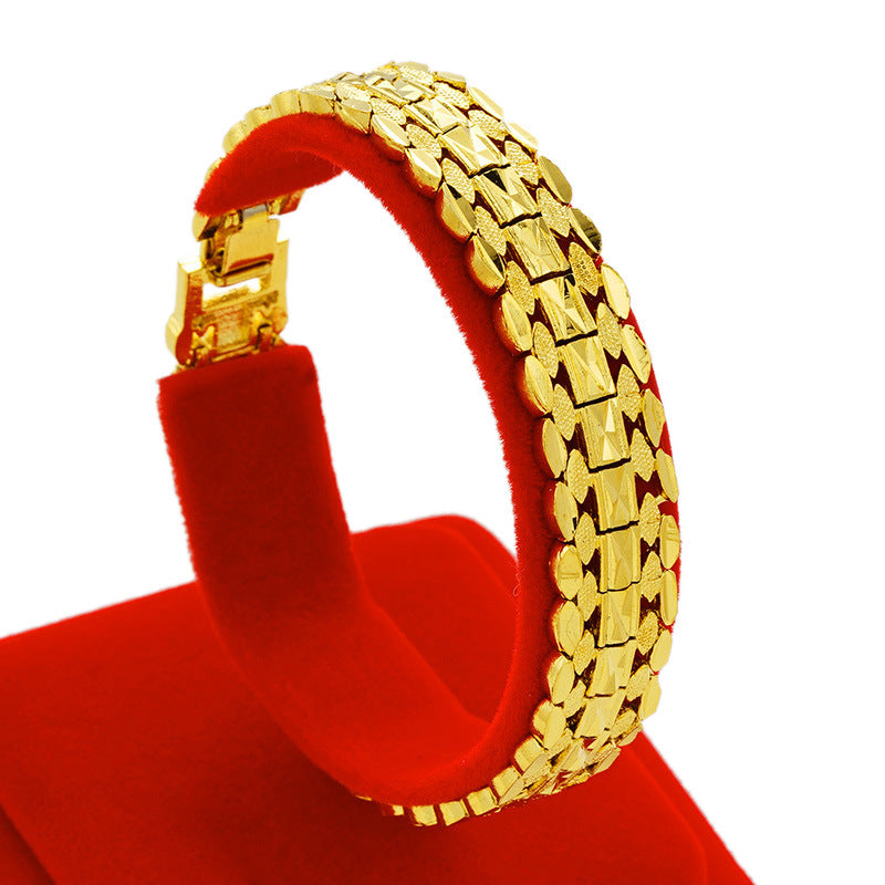 Men's Placer Gold Super Wide Brass Plated Watch Bracelets
