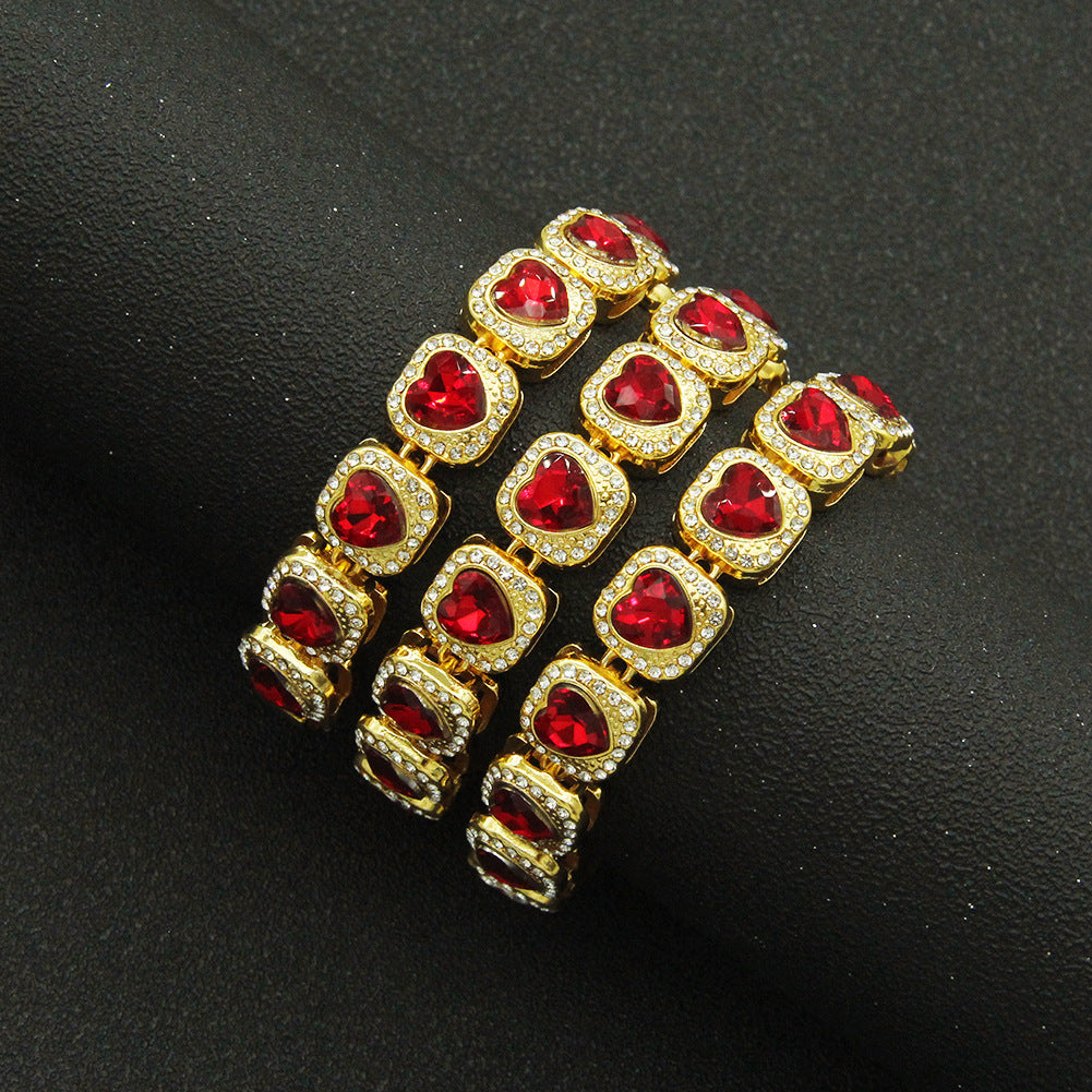 Men's Splendid Diamond Heart Love Red Cuban Necklaces