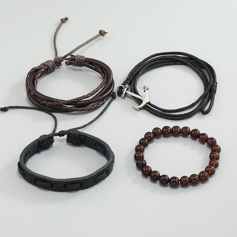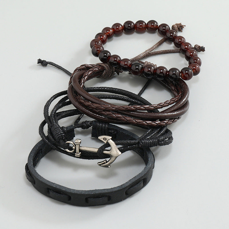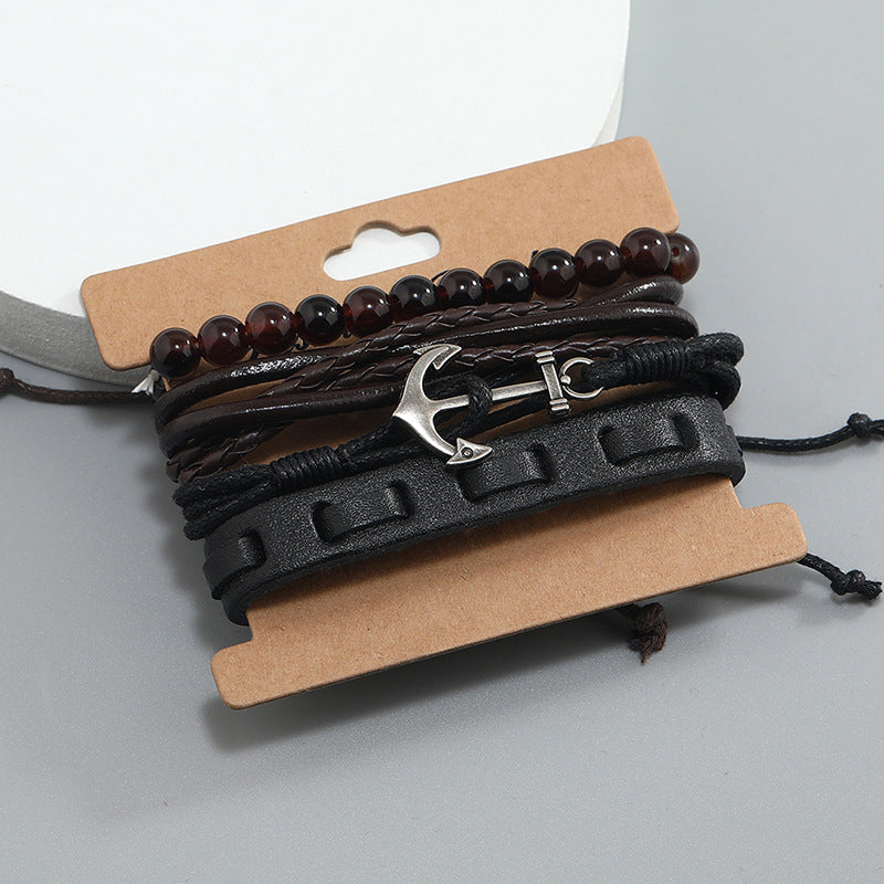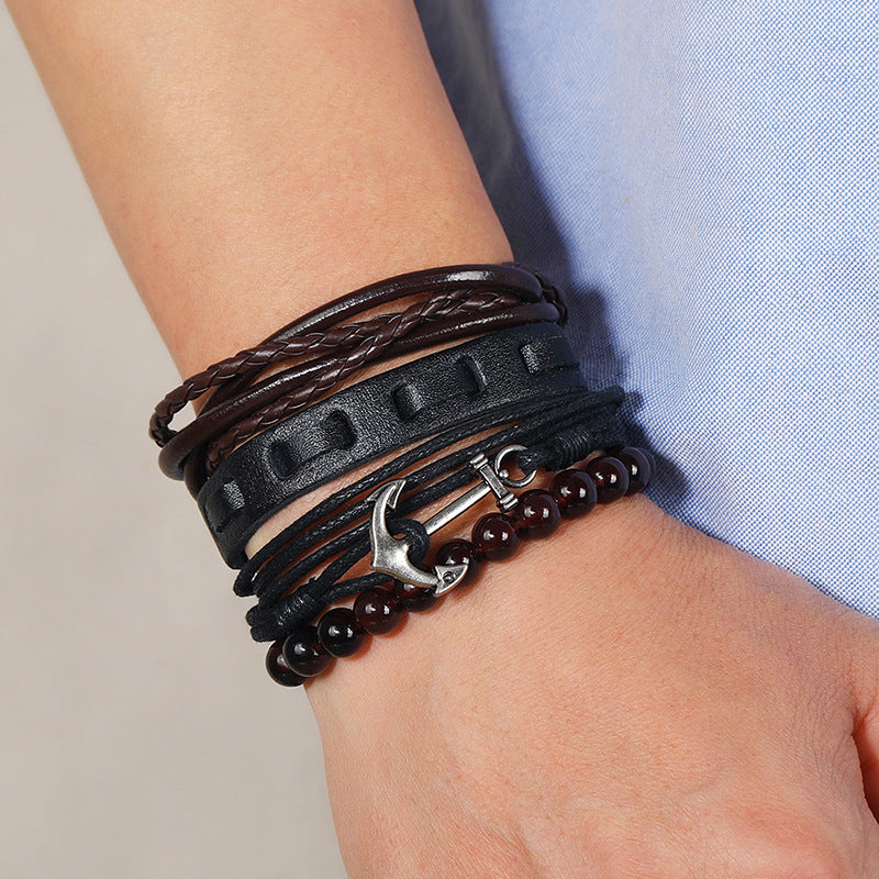 Simple Vintage Weave Boat Anchor Cowhide Carrying Strap Leather Bracelets