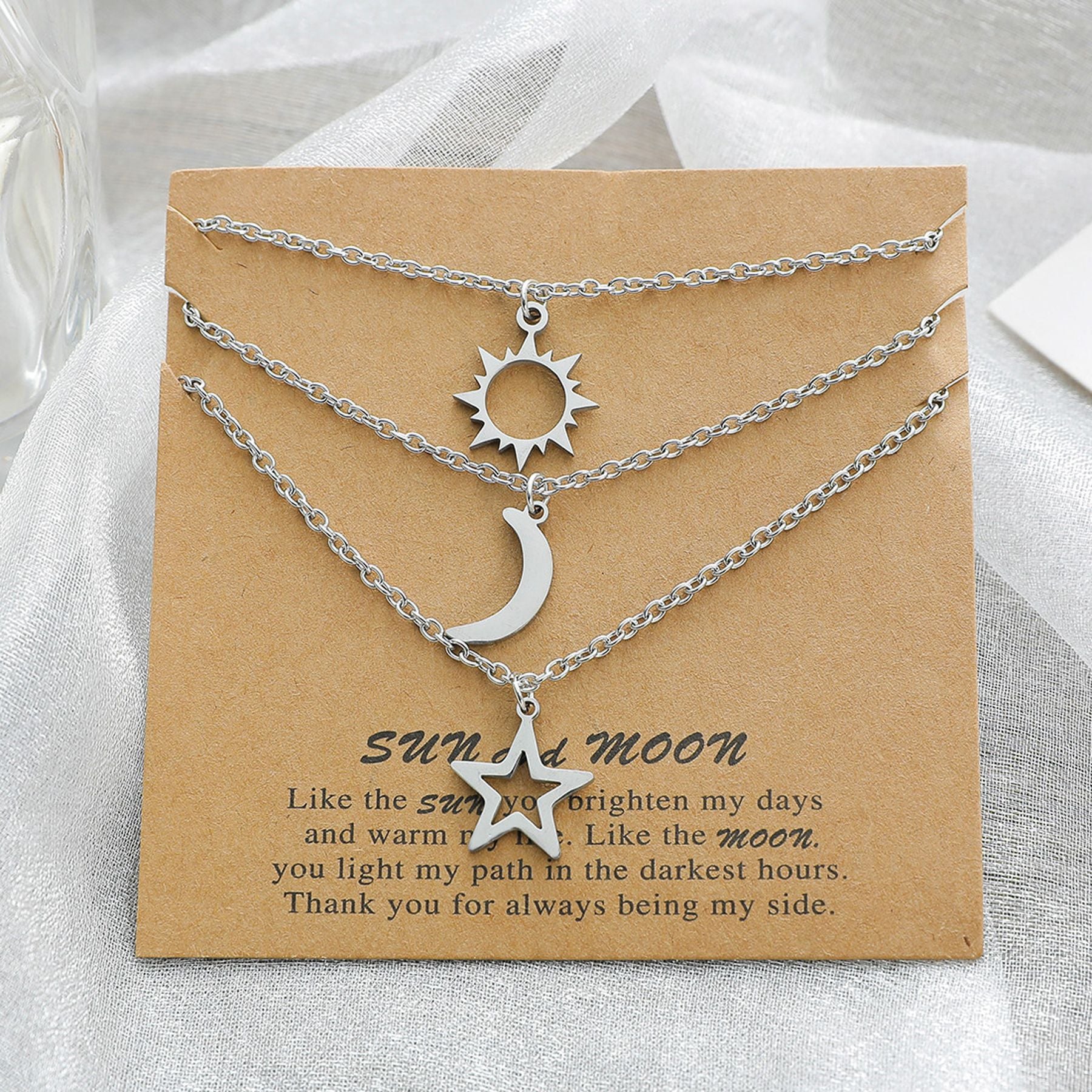 Stainless Steel Sun Moon Star Clavicle Necklaces