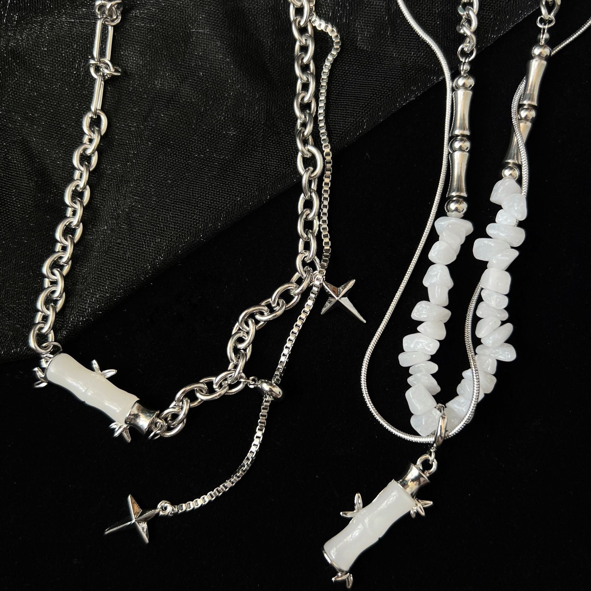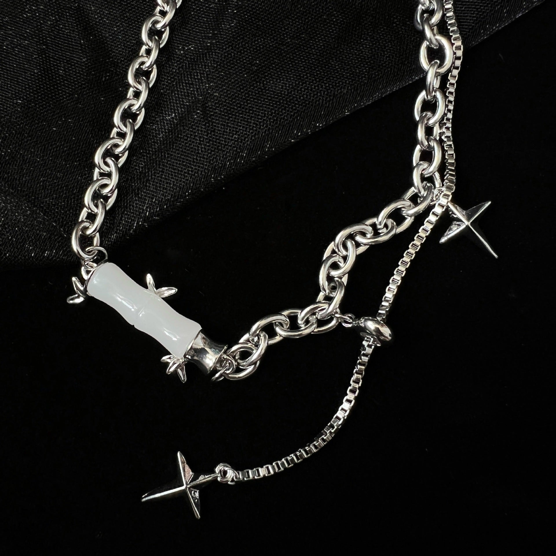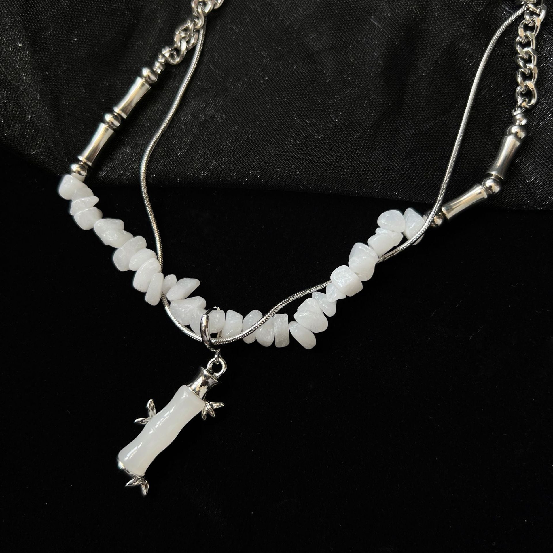 Color: Gravel Bamboo Section, Cross Tassel Chain Bamboo Section