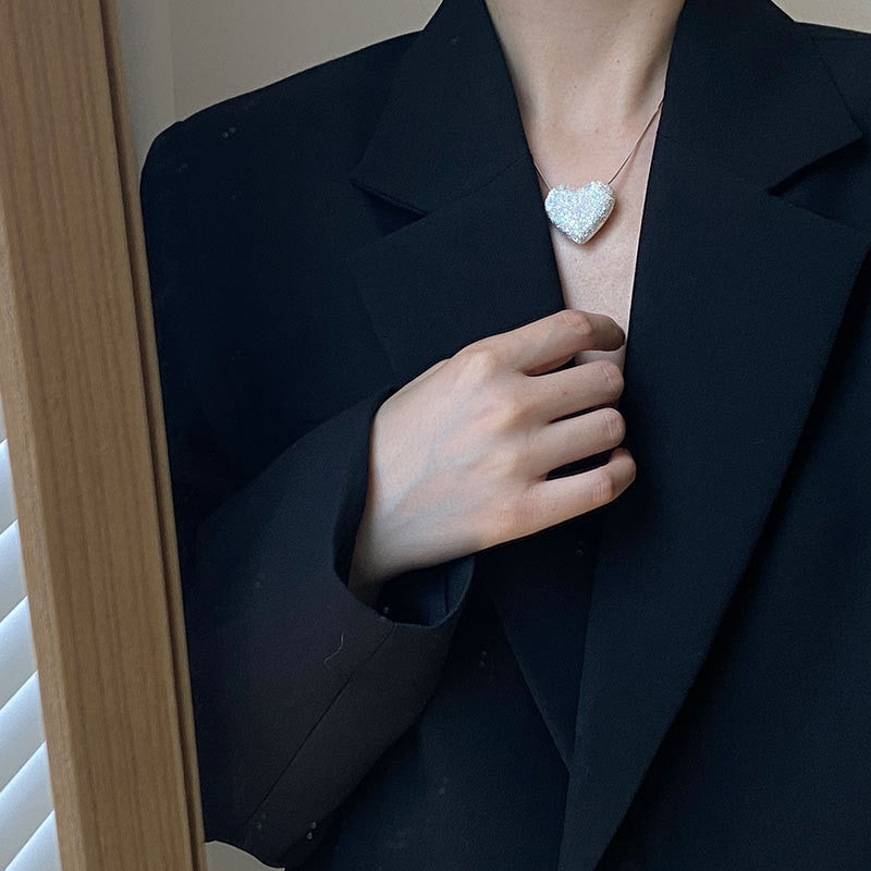 Women's Sier Frosted Big Heart Pendant Cold Necklaces