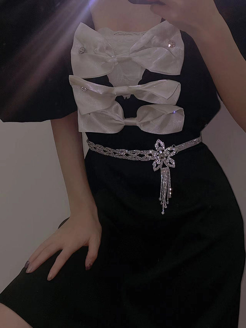 Women's Sparkling Full Rhinestone High-grade Fashionable Adjustable Flower Tassel Necklaces