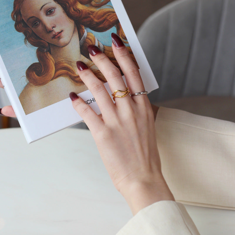 Women's Sterling Sier Irregular Curve Bar Switchable Rings