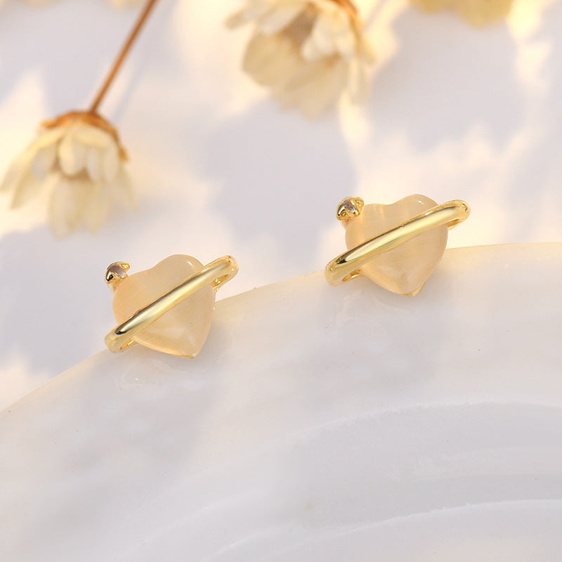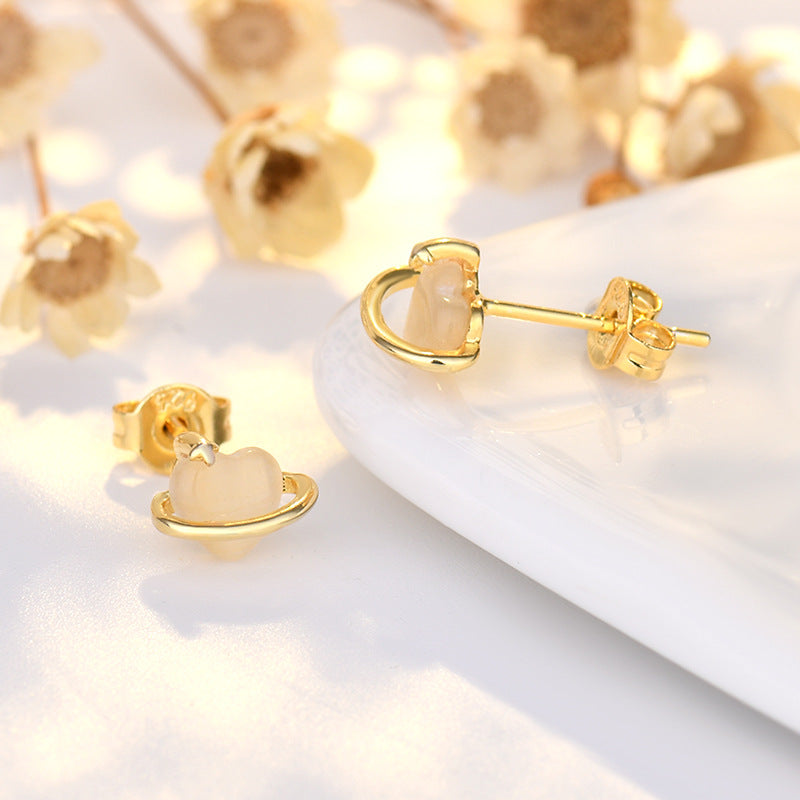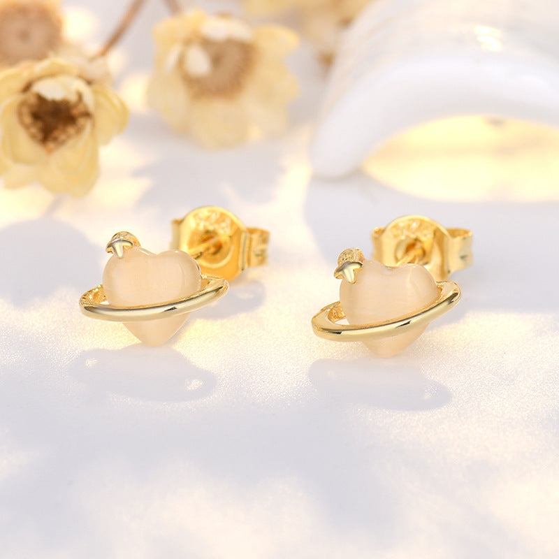 Women's Sterling Sier Needle Heart-shaped For Opal Earrings