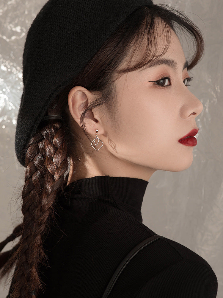 Women's Sterling Sier Needle Square Simple Eardrops Rings