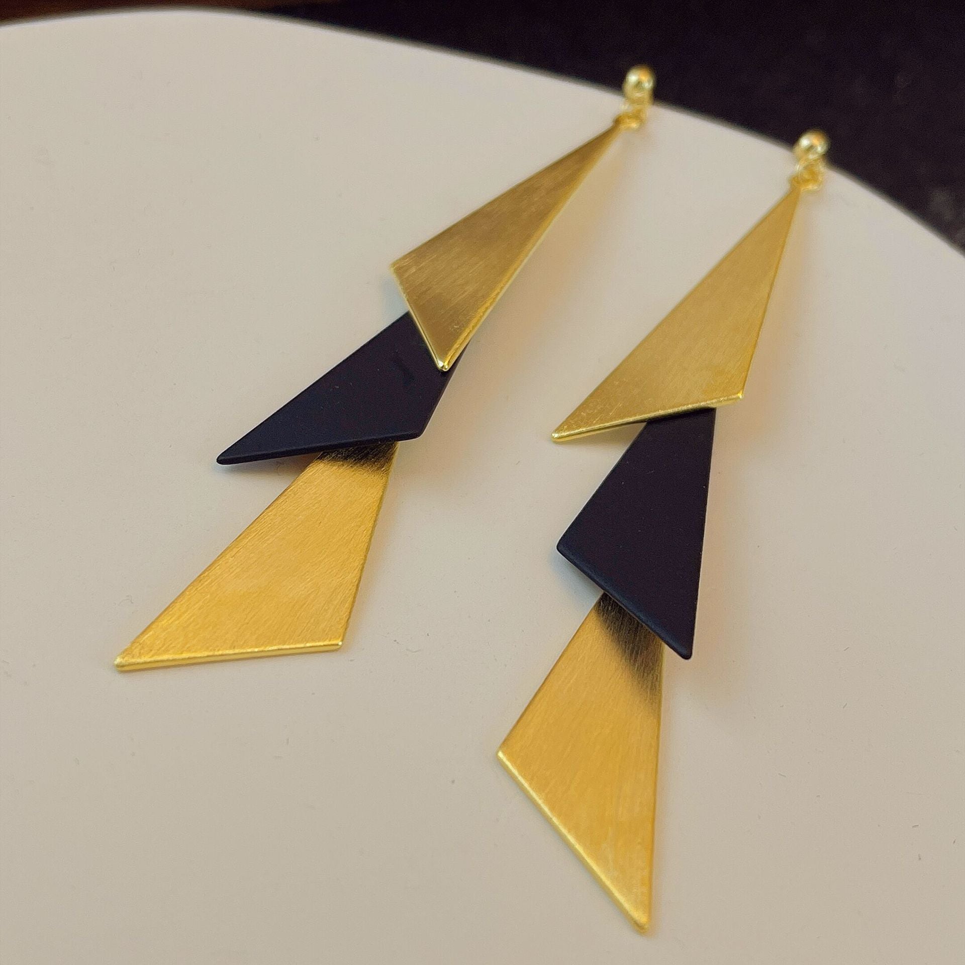 Women's Style Gold Brushed Black Triangle Elegant Earrings