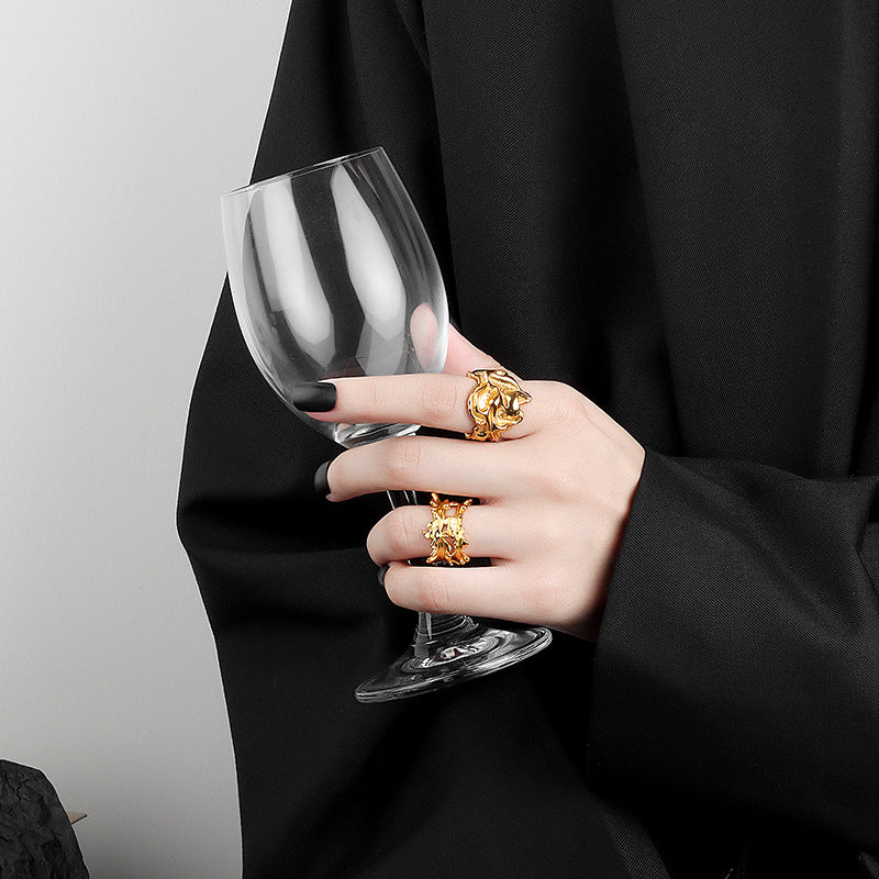 Women's Style Niche Design Minimalist Irregular Wide Texture Rings