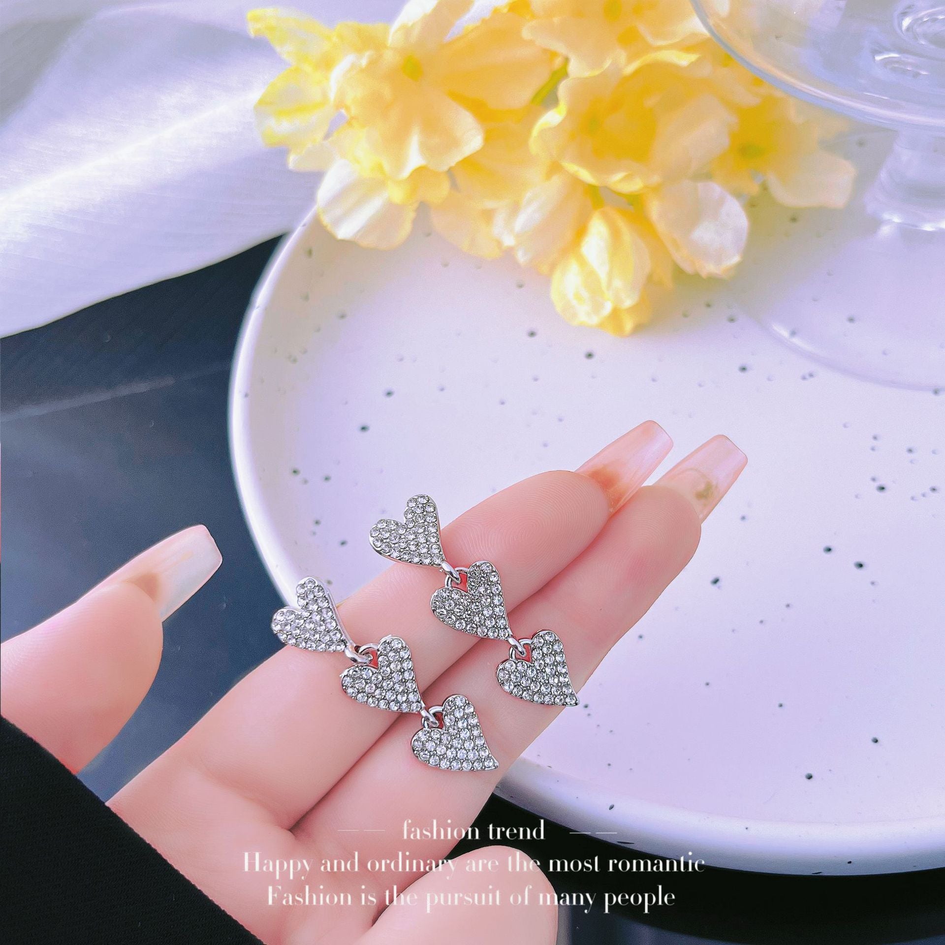 Women's Tassel Fully Jeweled Loving Heart Light Earrings