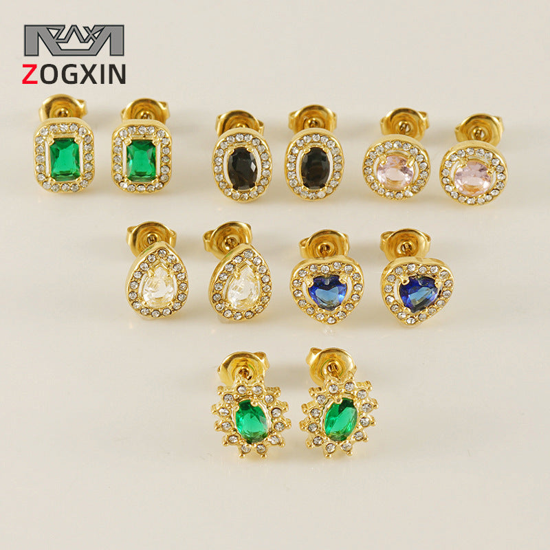Women's Titanium Steel Zircon Stainless Square High-grade Earrings
