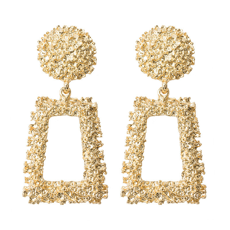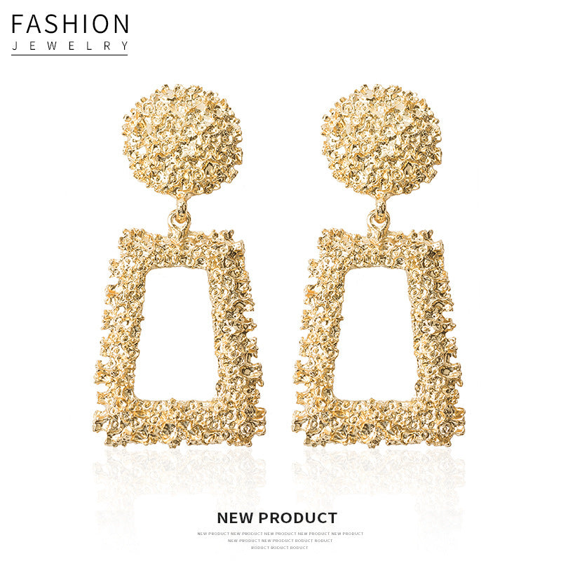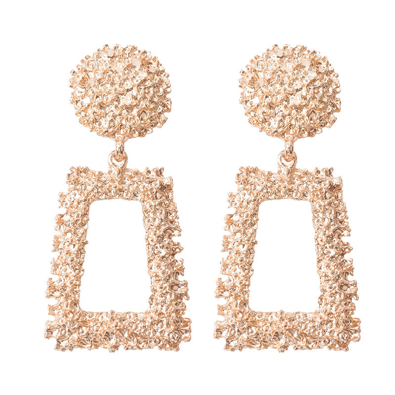 Women's Trapezoidal Geometric Frosted Embossed Metal Exaggerated Rings