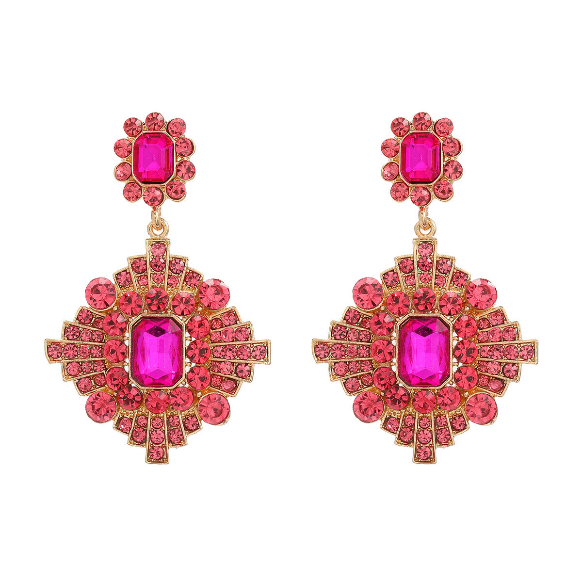 Women's Trendy Colorful Crystals Exaggerated Geometric Full Earrings