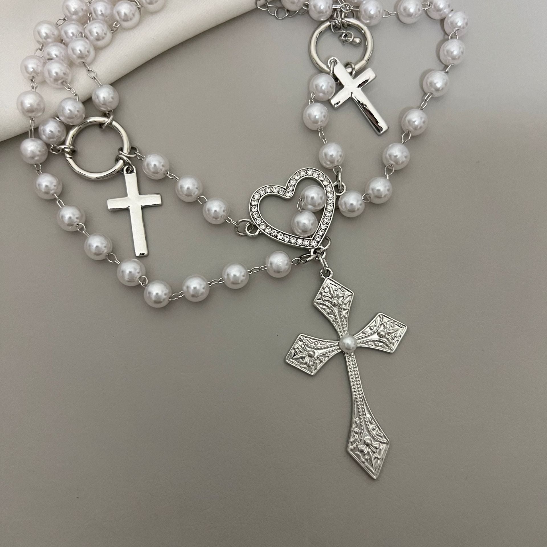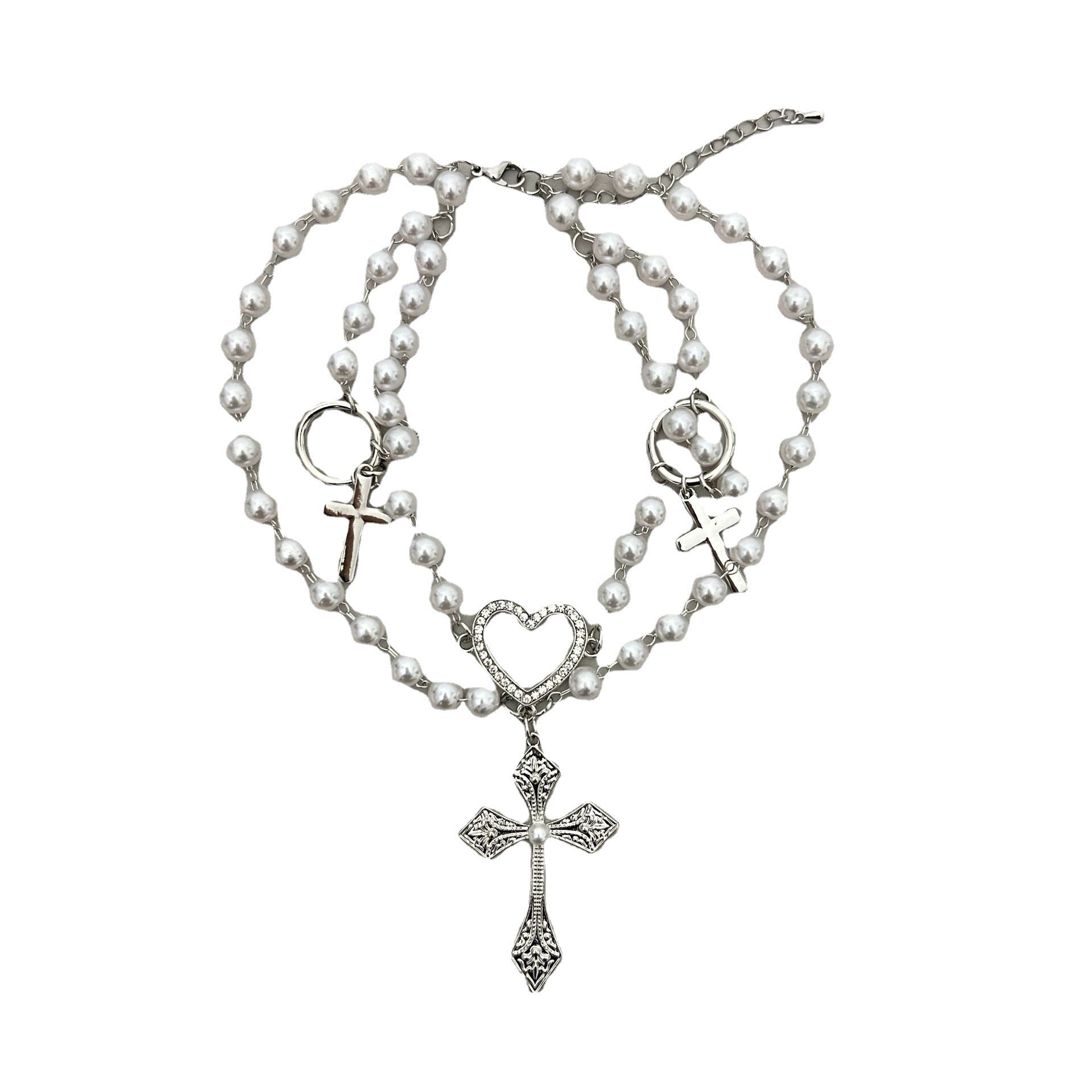 Women's Ya Twin Stringed Pearls Cross Clavicle Necklaces