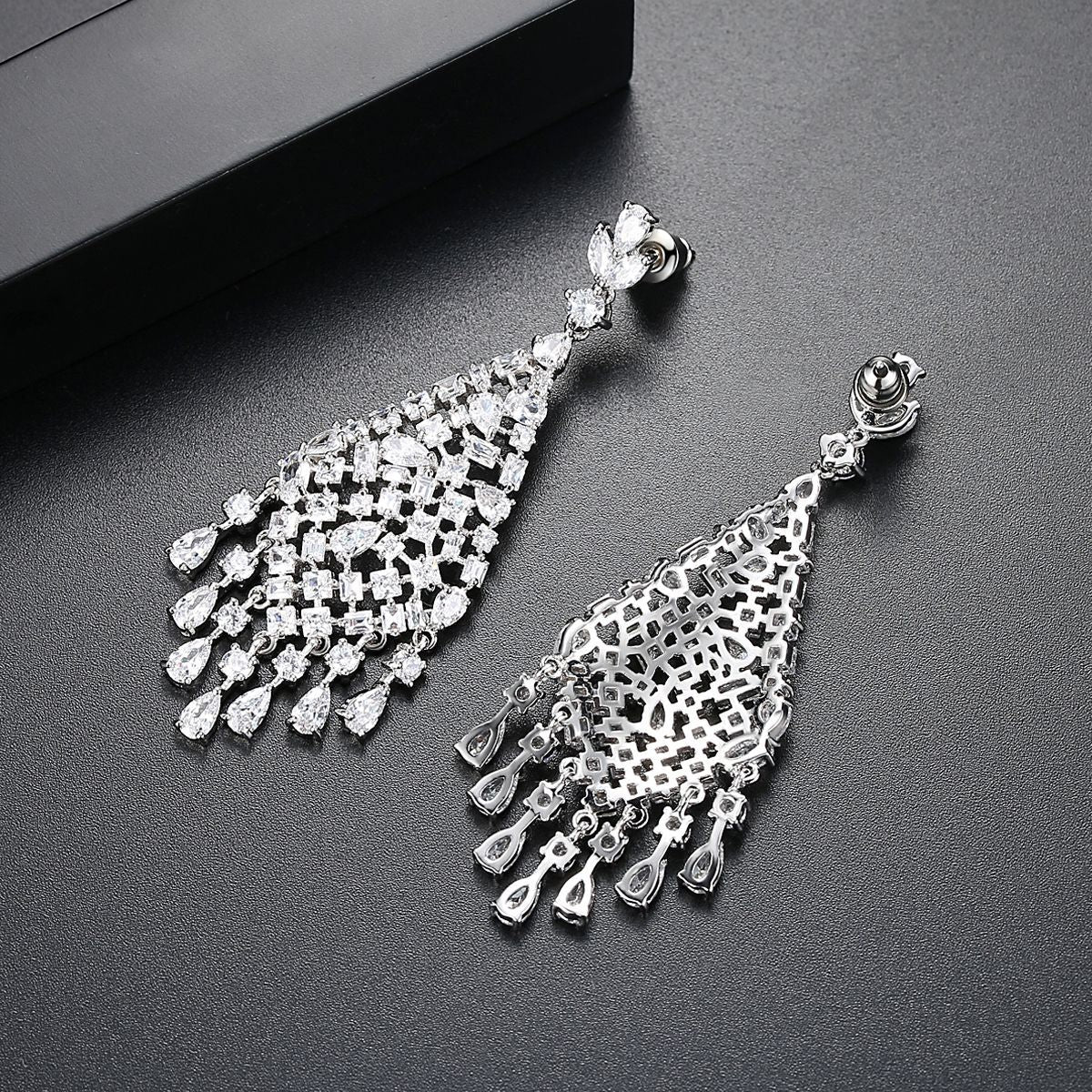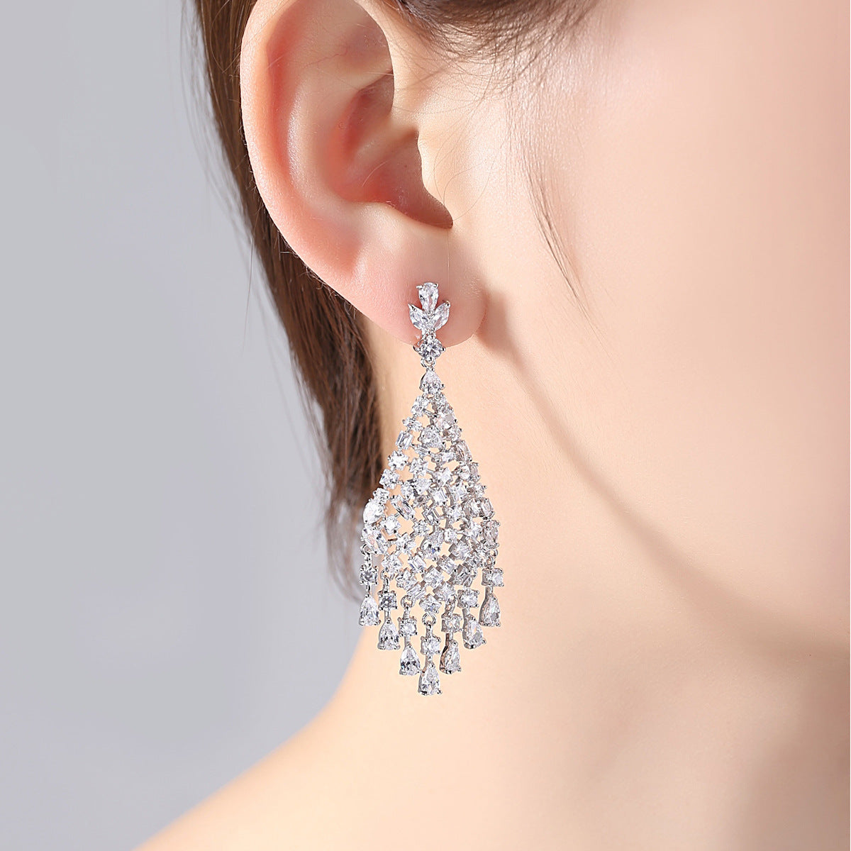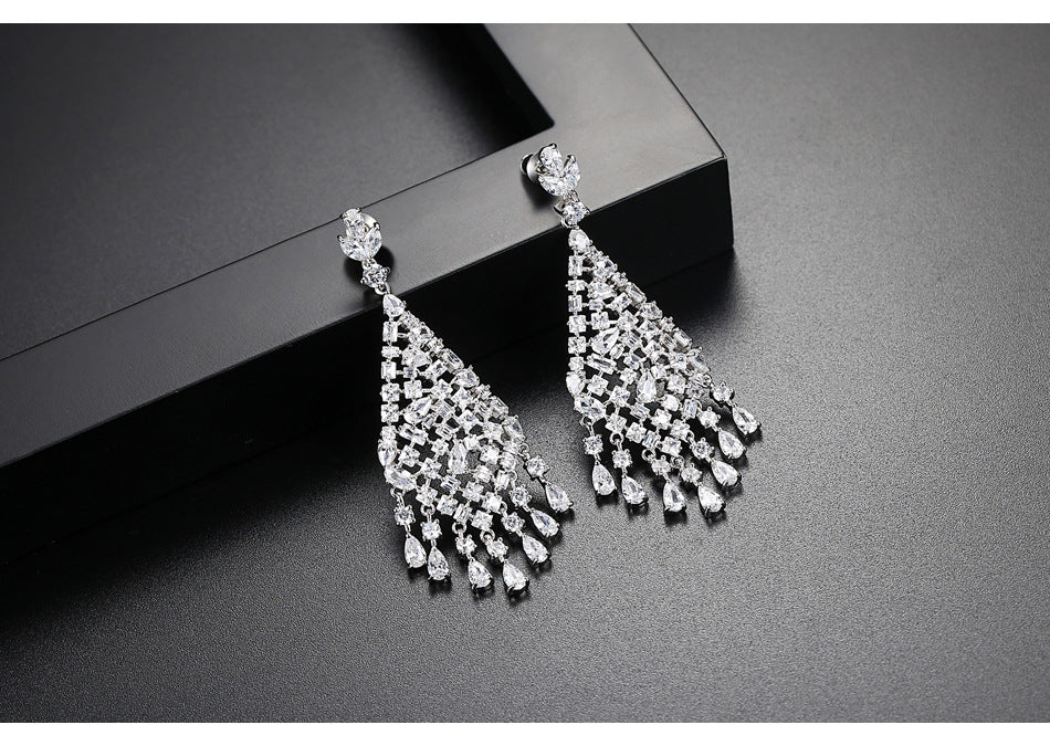 Women's Zircon Bridal Female Water Drop Exaggerated Tassel Earrings