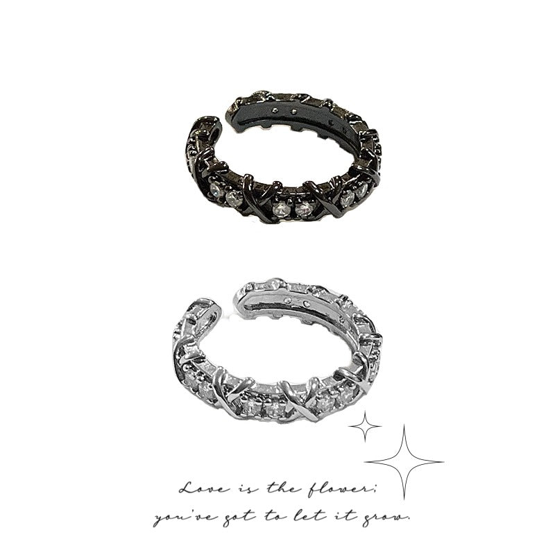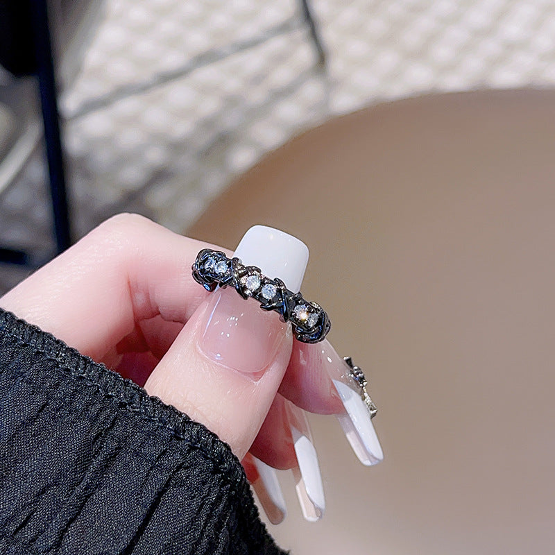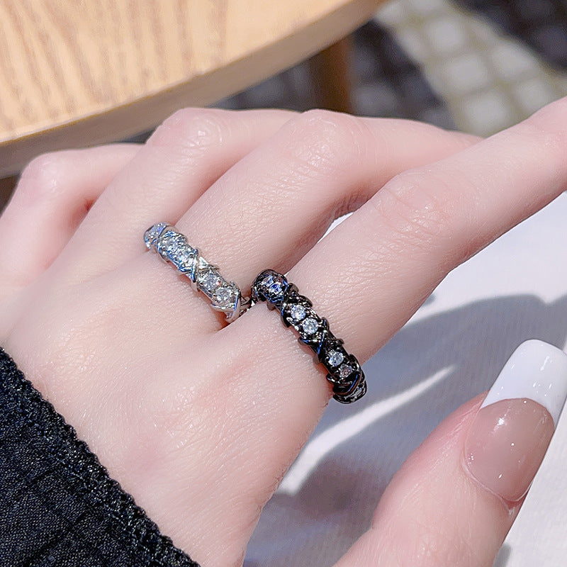 Women's Zircon Fashion French Cross Dark Open-end Rings