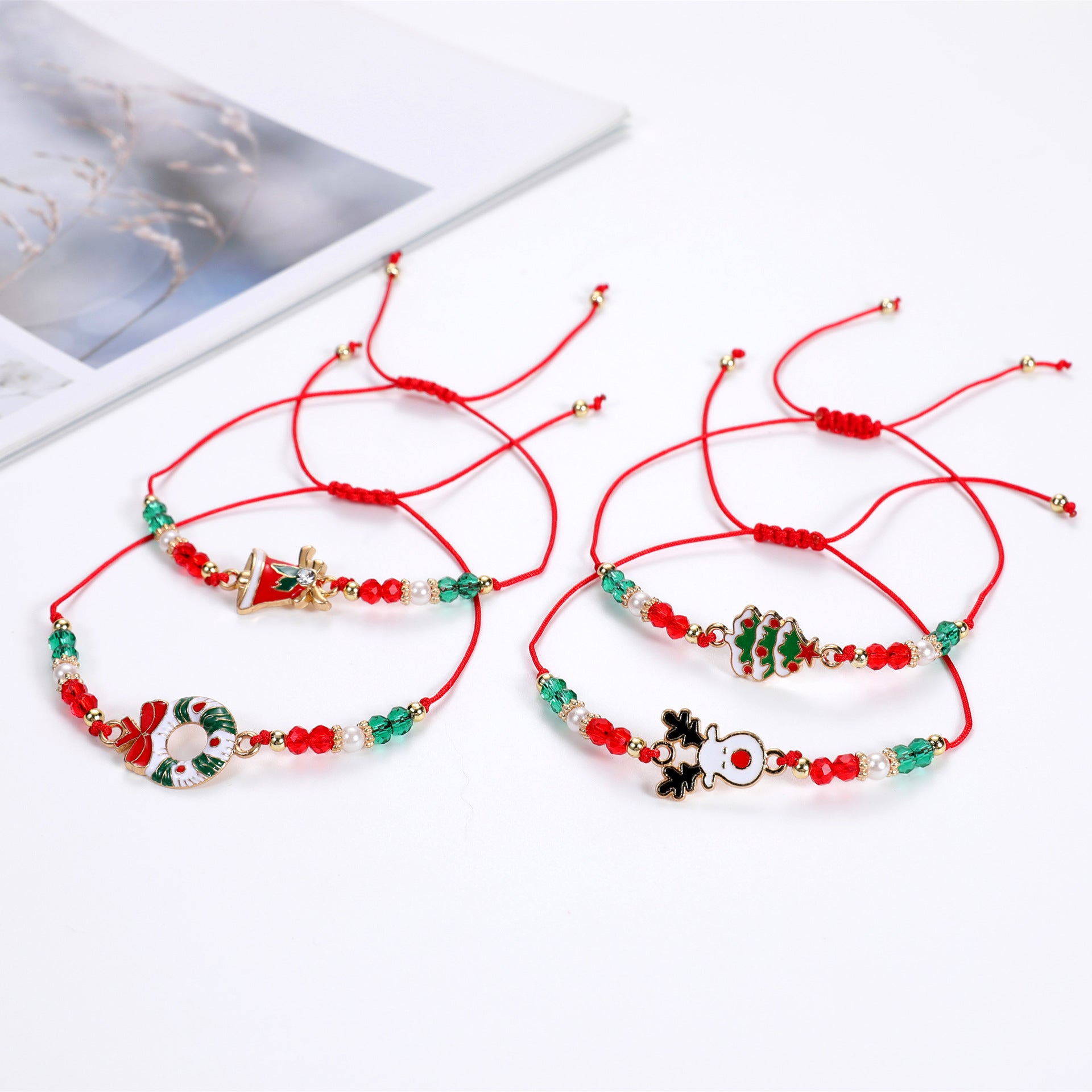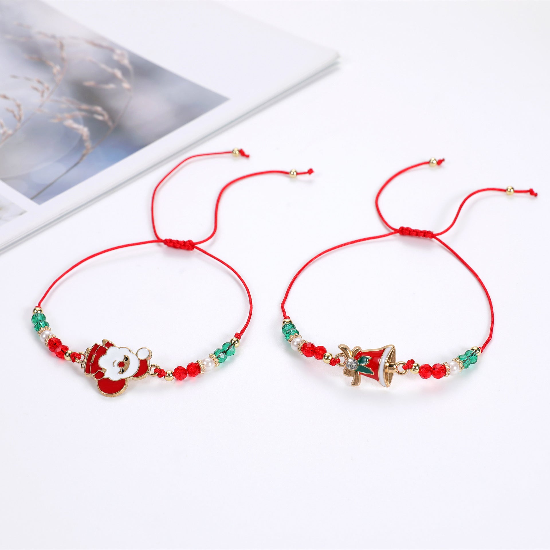 Bracelets de perles de cristal d'arbre de noël de cloche