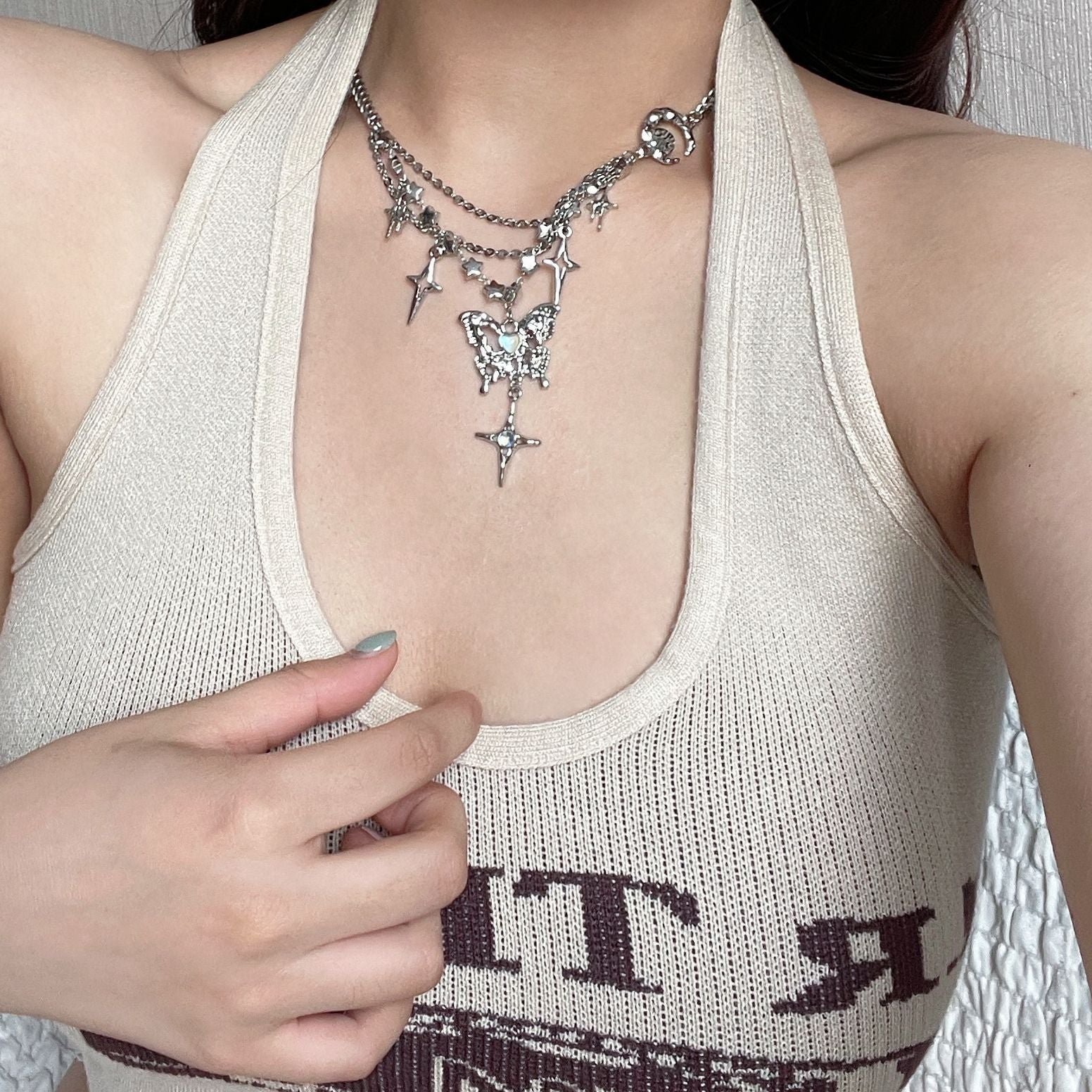 Colliers de chaîne de clavicule à couture de pampilles de papillon cool