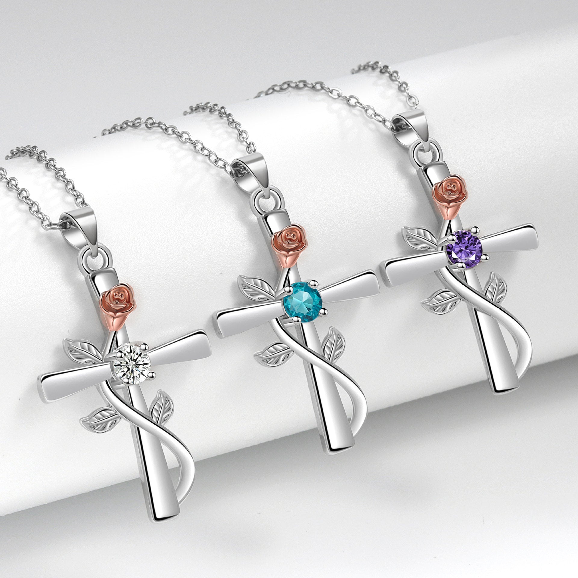 Mode Croix Rose Incrustée De Colliers De Diamants