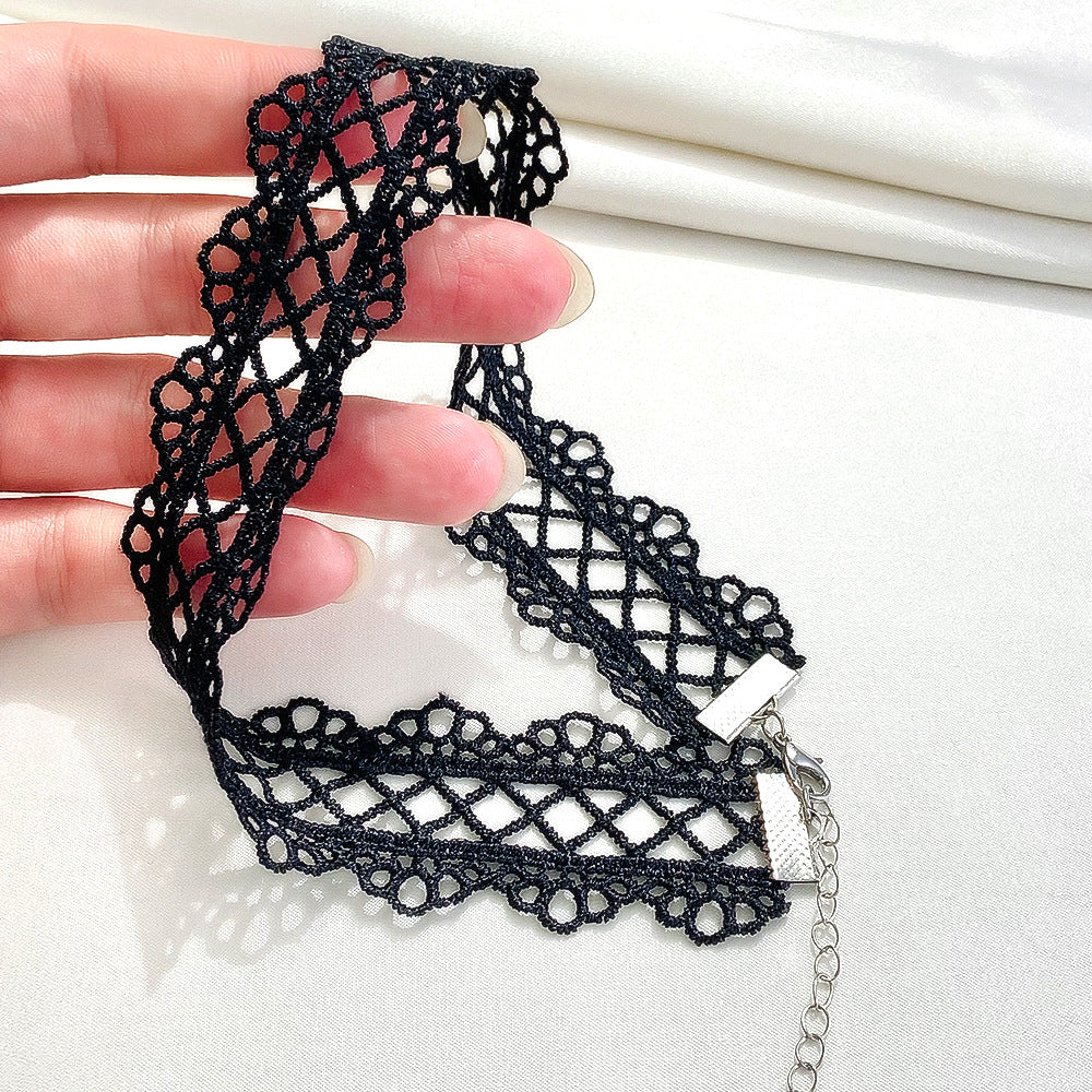 Colliers courts populaires à larges bords en dentelle noire vintage