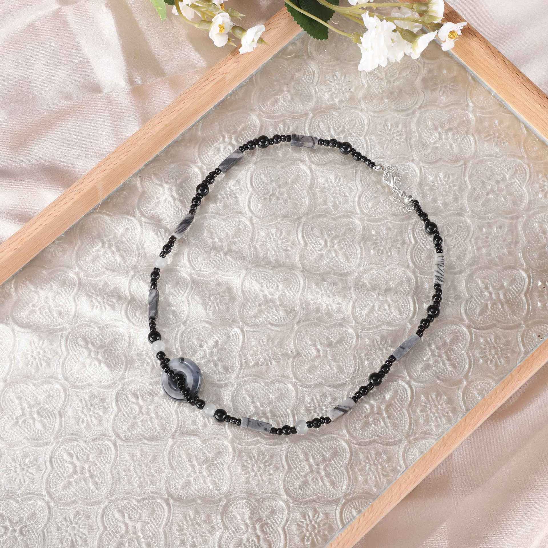 Colliers de chaîne de clavicule de perles vintage en pierre verte de style