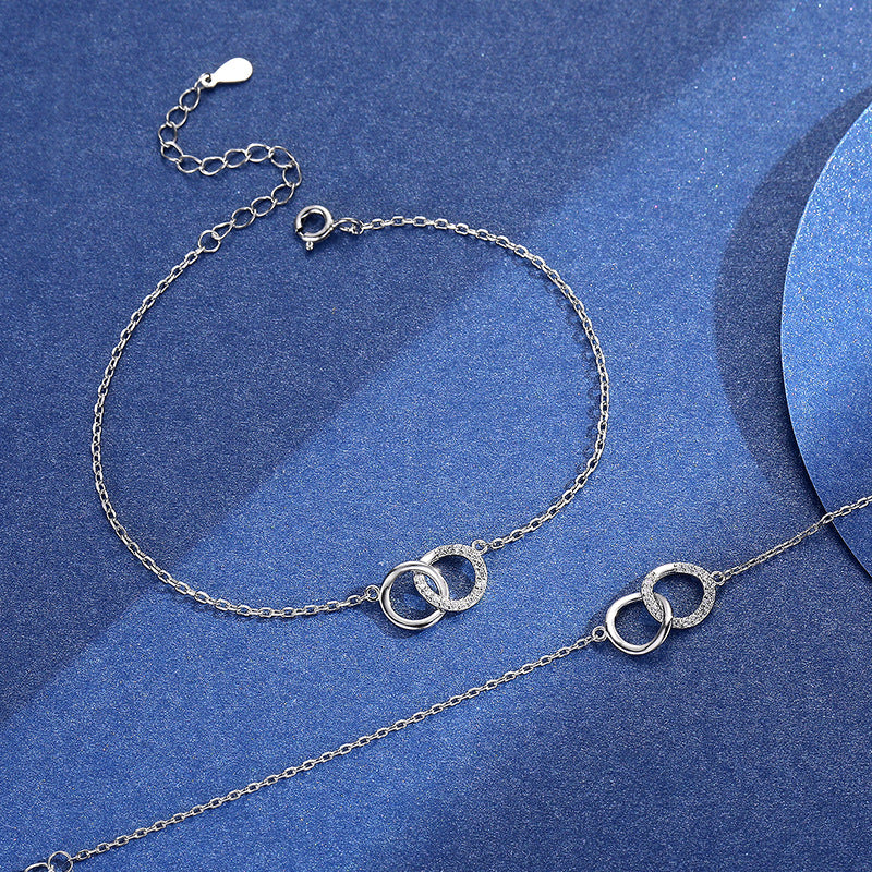 Accessoires pour femmes et hommes et bracelets coréens à double cercle en argent