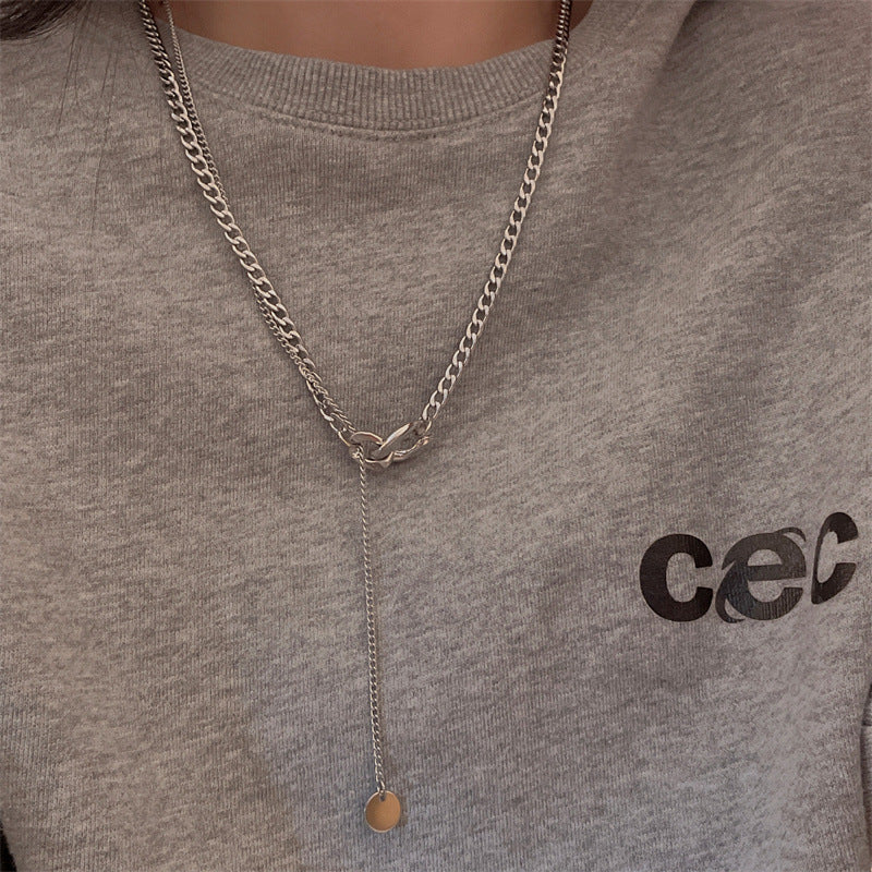 Colliers Design en acier titane avec pendentif plaque ronde en argent pour femmes, hommes et mode
