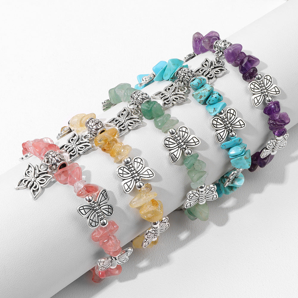 Bracelets en gravier et papillon vintage pour femmes et hommes