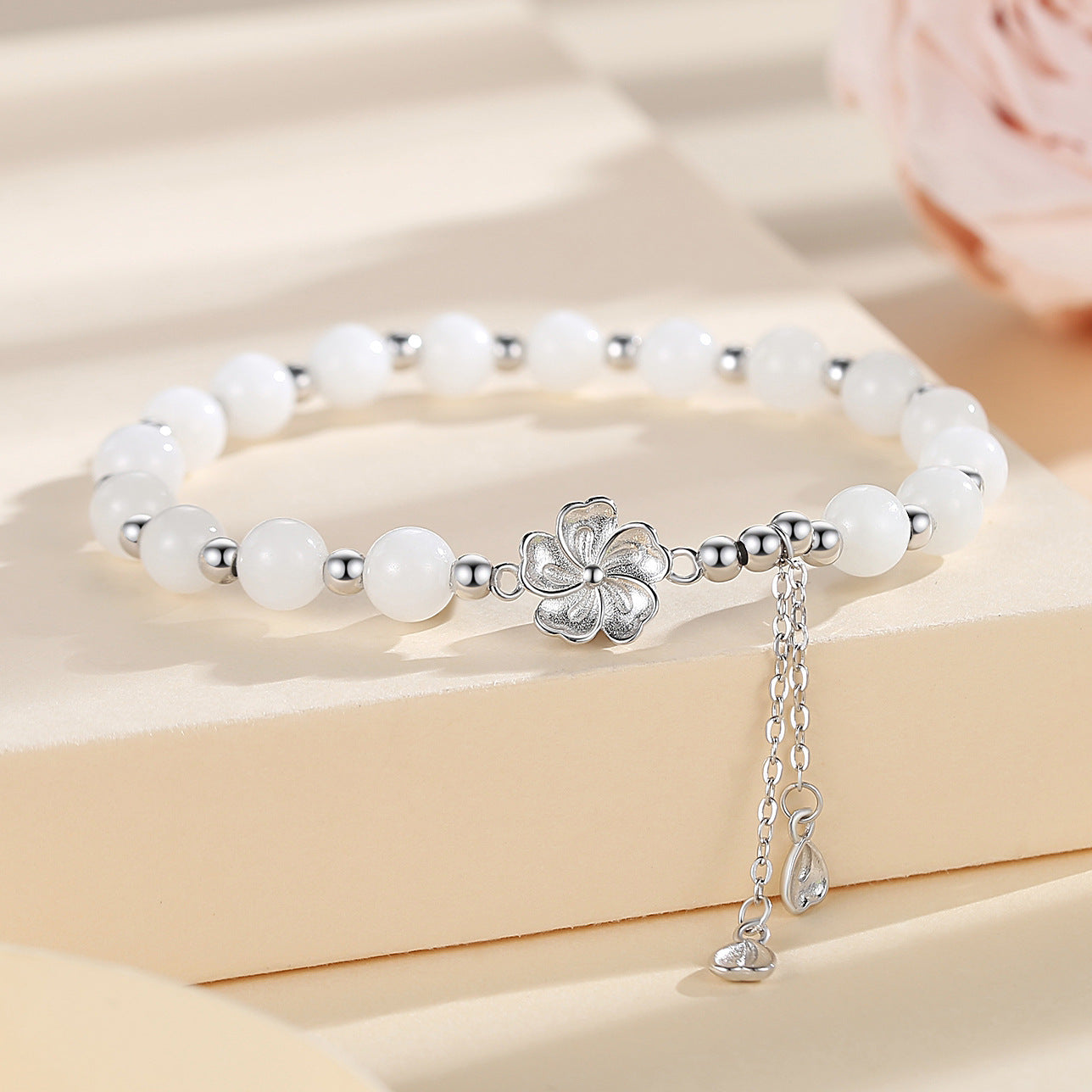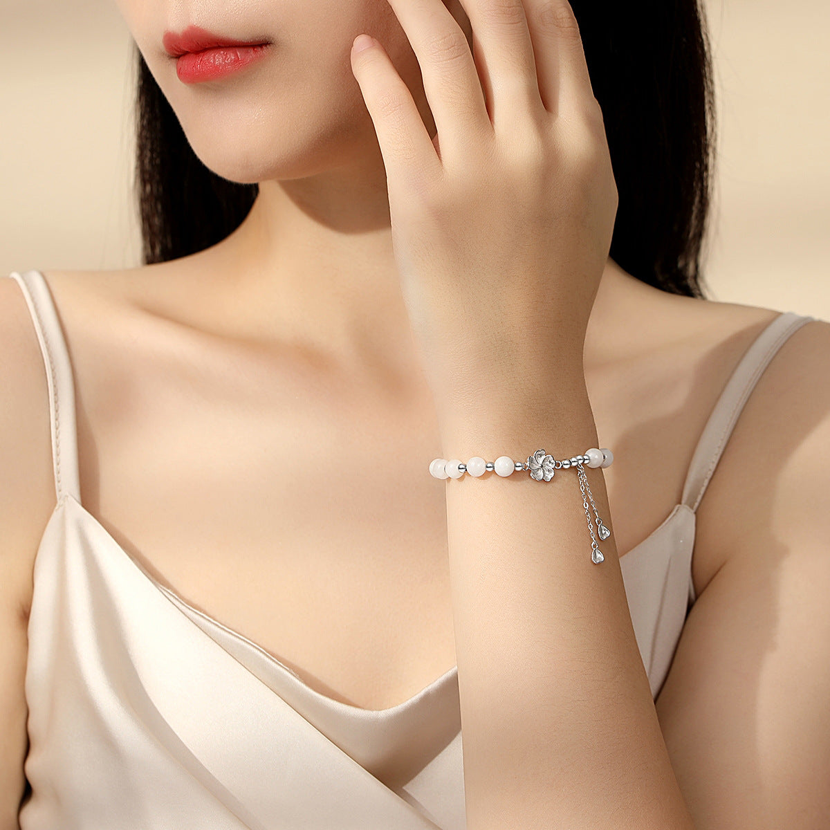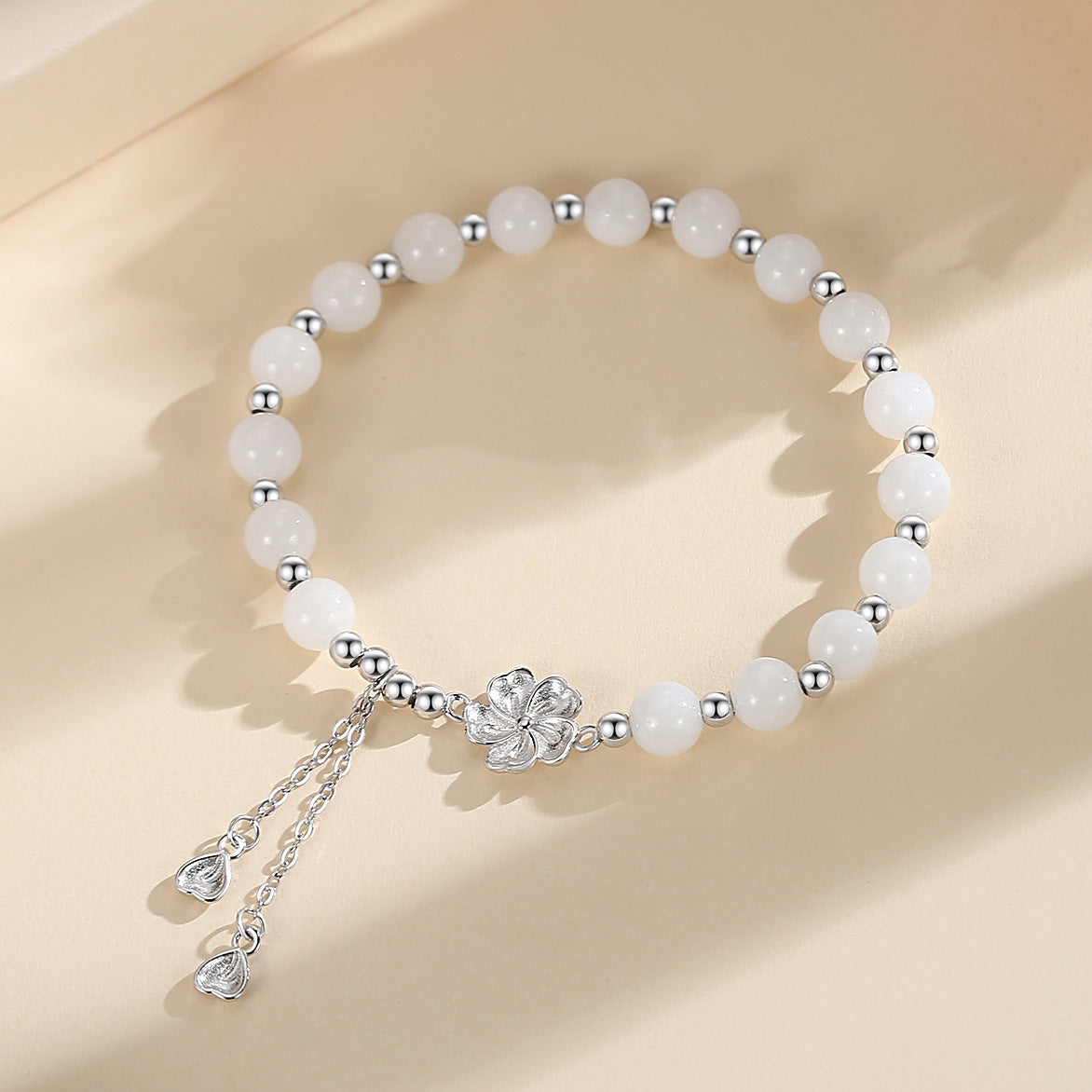 Bracelets en Jade à pampilles fraîches et douces pour femmes, fleurs de pêcher