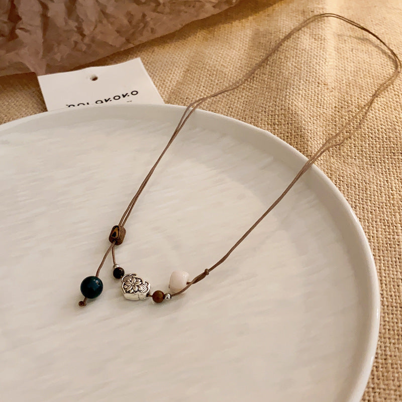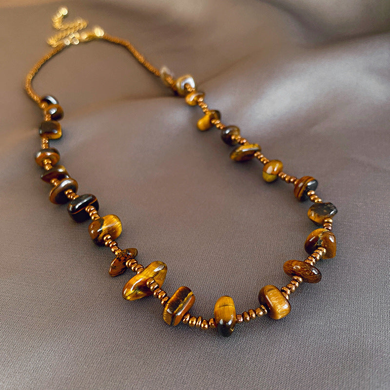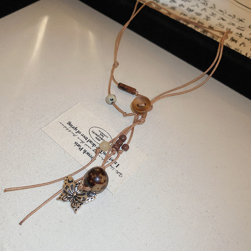 Colliers de pull en perles rétro chinois pour femmes, série Tigereye papillon