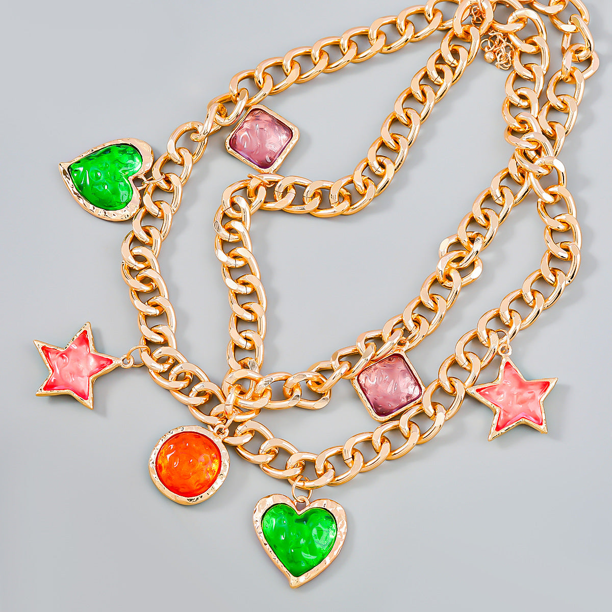 Colliers à pendentif en résine en forme de coeur d'amour d'étoile à cinq branches carrée pour femmes