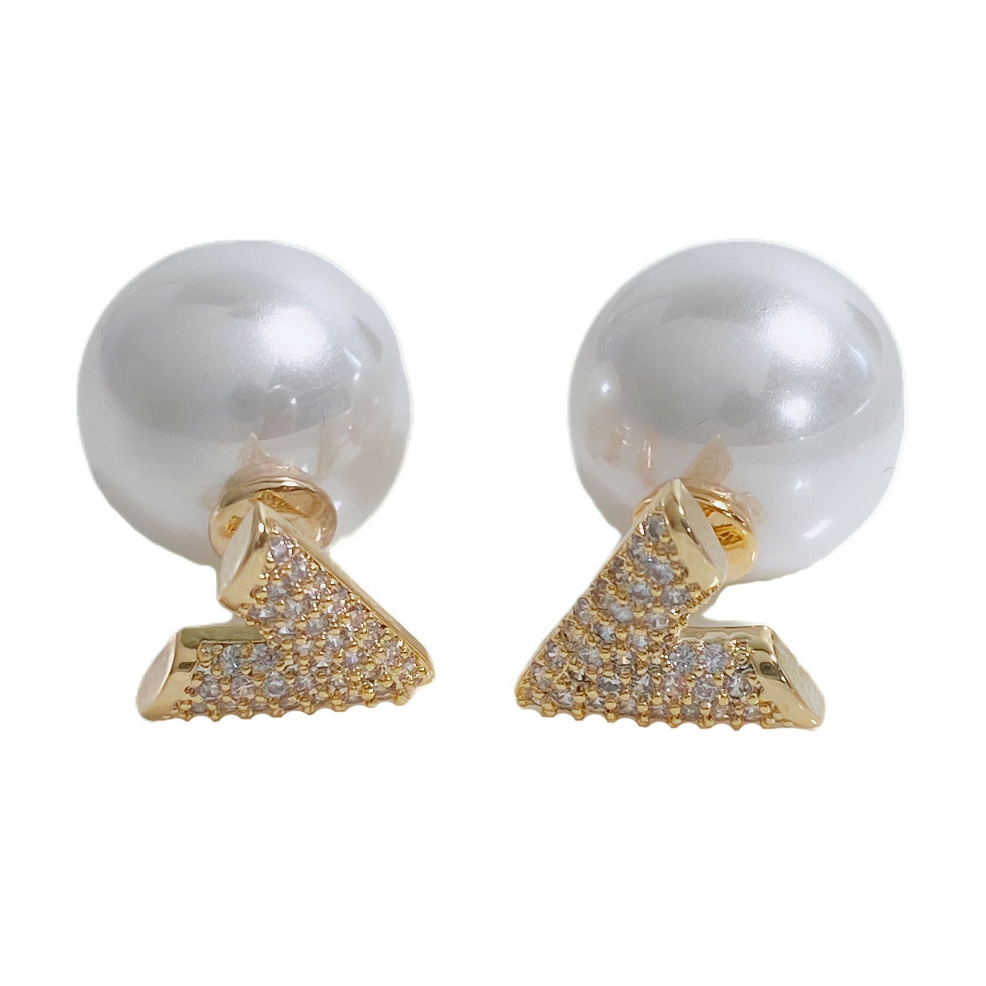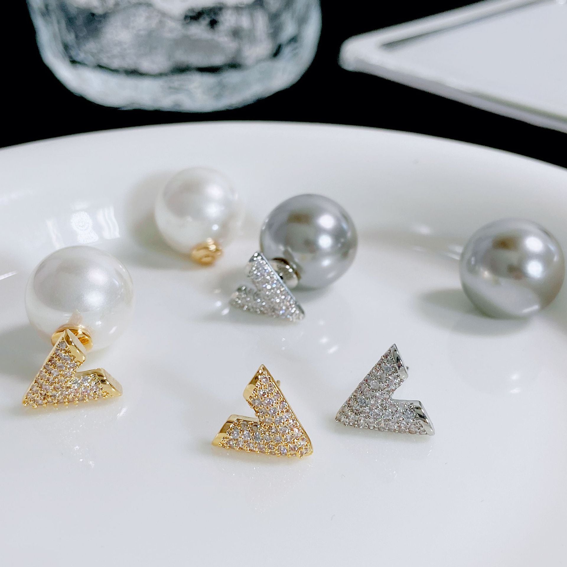 Boucles d'oreilles femme Zircon lettre V deux voies perle argent