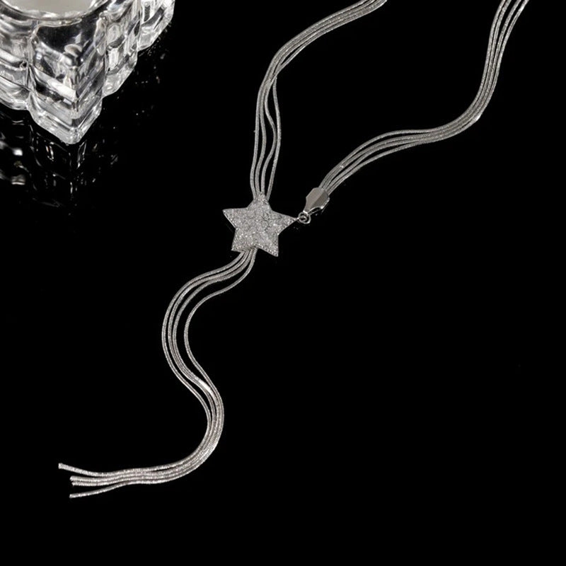 Color: Silver Pentagram Tassel Necklace