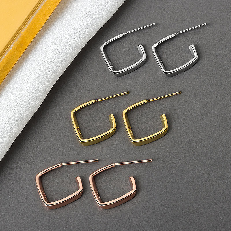 Women's Retro Style Square Three-dimensional High Sense Earrings