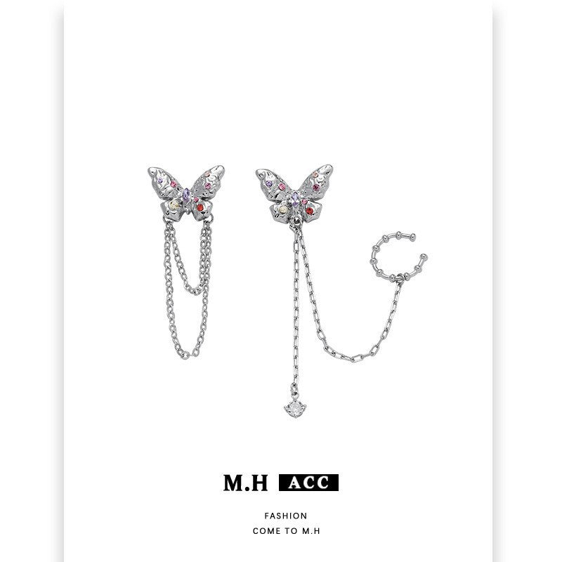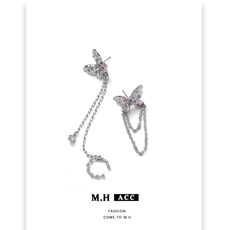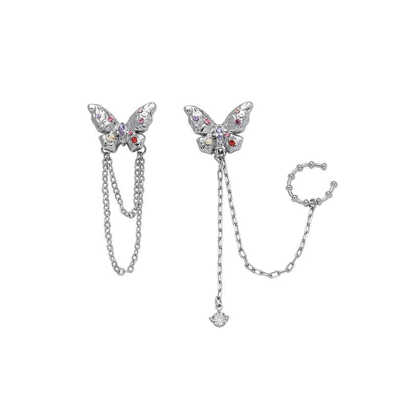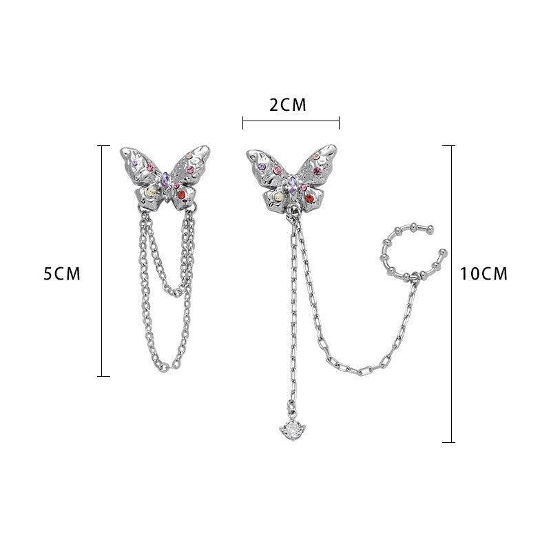 Women's Zirconium Butterfly Asymmetric For Temperamental Tassels Pastoral Style Earrings
